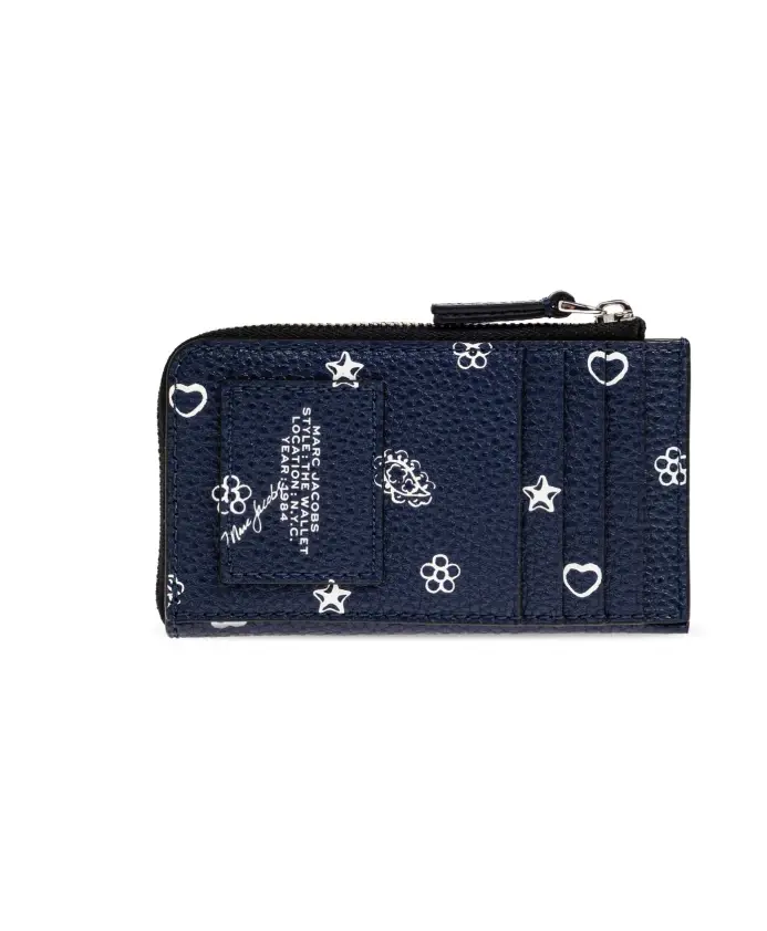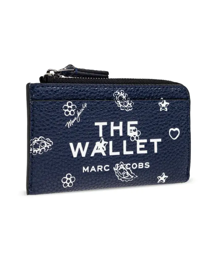 Кошелек Marc Jacobs The Wallet - это темно-синий держатель для карт, изготовленный из зернистой кожи, сочетающий минималистичный прямоугольный силуэт с игривыми белыми графическими мотивами. Он обеспечивает надежное хранение на каждый день благодаря застежке-молнии сверху и трем отделениям для карт. Ключевые особенности: Синий | Темно-синий | Кожа | Застежка-молния сверху | Три отделения для карт | Прямоугольная форма с одним закругленным углом | Неправильная белая графика: цветы, звезды и сердечки | Заметная надпись «THE WALLET» и логотип Marc Jacobs | Текстура зернистой кожи | Размеры и посадка: Высота: 8 см | Ширина: 13 см | Состав и уход: Кожа