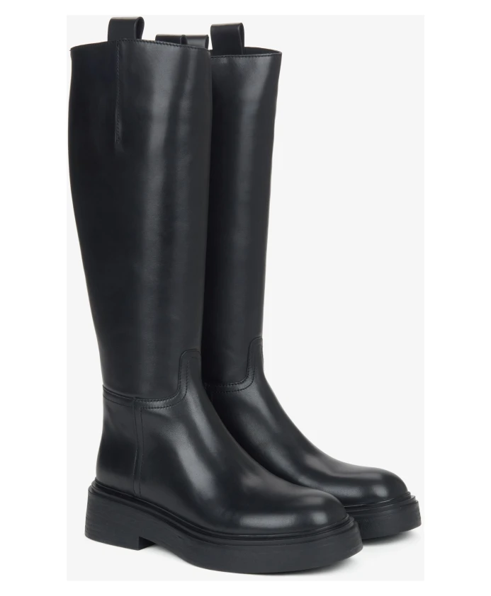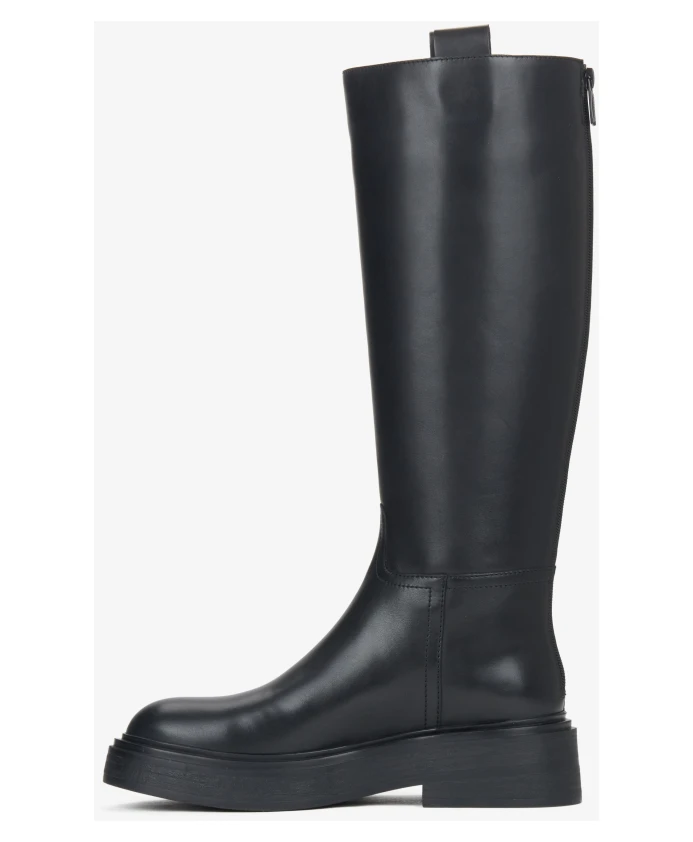 Ботинки на платформе Estro сочетают в себе натуральную кожу и 5-сантиметровый каблук-платформу, создавая устойчивый, современный силуэт, идеально подходящий для осени и зимы. Ключевые особенности: Черный | Кожа | Теплая фланелевая подкладка | Прочная конструкция | Застежка-молния сбоку | Высота до колена | Декоративный ремешок в верхней части голенища | Каблук-платформа 5 см | Размеры и посадка: Общая высота: 39,5 см | Ширина голенища: 38 см | Длина стельки (36): 23 см | Длина стельки (37): 23,5 см | Длина стельки (38): 24,5 см | Длина стельки (39): 25 см | Длина стельки (40): 25,5 см | Состав и уход: 100% натуральная кожа | Фланелевая подкладка