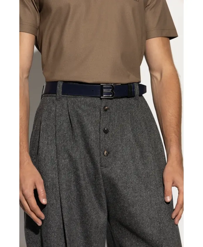 Ремень Bally с двусторонним дизайном - это универсальный кожаный аксессуар, который можно менять между черным и темно-синим цветом для создания самых разных образов. Он сочетает в себе тисненую натуральную кожу и эффектную двухцветную металлическую пряжку в виде буквы «B», создавая элегантный и формальный образ. Ключевые особенности: Черный | Натуральная кожа | Двусторонний | Застежка на пряжке | Тисненая текстура | Классическая, лаконичная форма | Двухцветная металлическая пряжка в виде буквы «B» | Двусторонний (черный/темно-синий) | Размеры и посадка: Ширина: 3,5 см | Средняя ширина | Материал и уход: Натуральная кожа | Протирать сухой тканью