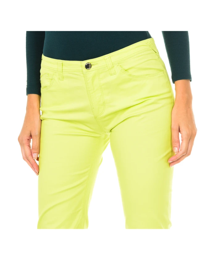 Эти длинные брюки - незаменимый элемент гардероба для создания расслабленного и комфортного стиля с современным акцентом. Особенности: - Пояс с петлями для ремня. - Застежка спереди на молнию и пуговицу. - Два передних кармана и дополнительный мини-карман. - Два задних кармана с металлизированным логотипом. - Эластичная ткань. - Видимые швы в тон. Идеально подходят для создания универсальных образов на каждый день и для неформальных случаев. Состав: 81% хлопок, 15% полиэстер, 4% эластан. Уход: Стирать при температуре не выше 30°C. Гладить при средней температуре, не выше 110°C. Сушить в сушильной машине. Не отбеливать. Не подвергать химчистке.