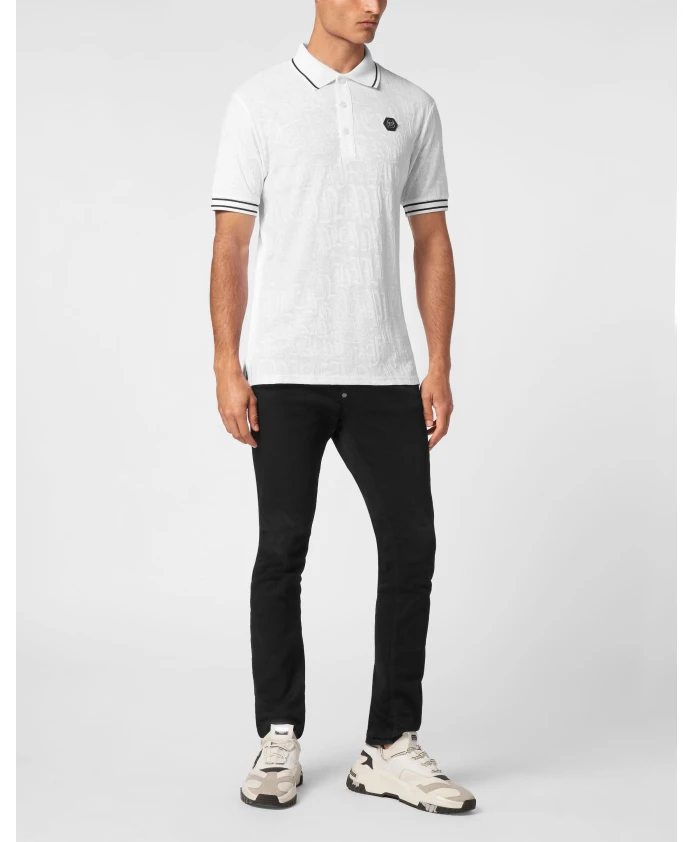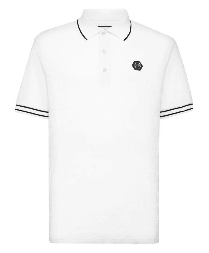 Поло Philipp Plein SS - это обновленная версия классической модели, дополненная жаккардовой надписью с логотипом бренда и шестиугольной нашивкой из сафьяновой кожи на груди. Оно сочетает в себе комфорт хлопковой ткани и узнаваемый фирменный стиль. Основные характеристики: Белый | Хлопок | Пуговицы с логотипом | Два боковых разреза для большей свободы движений | Жаккардовый шестиугольный узор PP по всей поверхности | Воротник и манжеты из полосатой трикотажной резинки | Короткие рукава | Нашивка с логотипом из сафьяновой кожи на левой стороне груди | Состав и уход: 100% хлопок | Нашивка из сафьяновой кожи | Инструкции по уходу см. на этикетке.