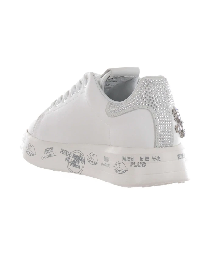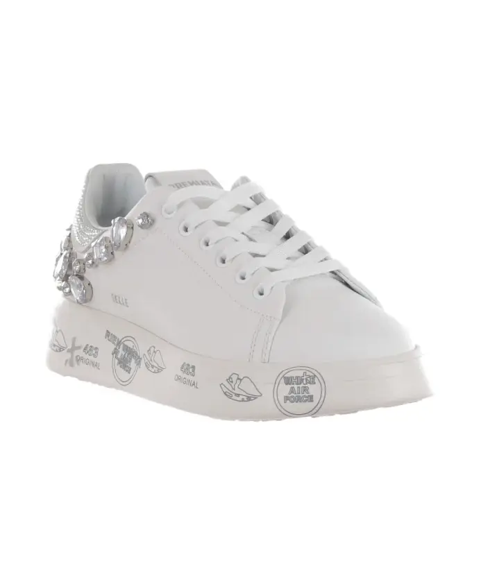 Кроссовки Premiata Belle сочетают в себе классический кожаный силуэт с блестящими стразами на спойлере. Закругленный носок и платформа делают их универсальным вариантом на каждый день, придающим им изысканный спортивный вид. Ключевые особенности: Белый | Кожа | Платформа для увеличения роста | Легкая резиновая подошва | Шнуровка | Съемная стелька | Закругленный носок | Спойлер со стразами | Стразы на внешней стороне | Низкий верх / мягкий воротник | Размер и посадка: Стандартная посадка | Состав и уход за материалом: Кожа (верх) | Кожаная подкладка и съемная стелька | Резиновая подошва | Чистить мягкой тканью. Не стирать в стиральной машине.