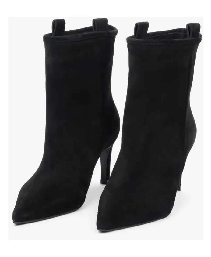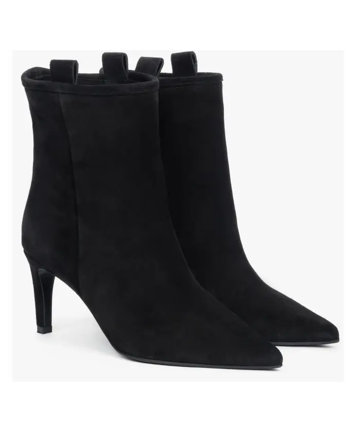 Ботильоны Estro Stiletto сочетают в себе верх из натуральной замши и мягкую фланелевую подкладку, создавая элегантный образ и исключительный комфорт. Изящный силуэт на шпильке дополнит как повседневные, так и нарядные образы. Ключевые особенности: Черный | Замша | Эластичный верх | Конструкция без застежек | Шпилька | Высота до щиколотки | Фланелевая подкладка и стелька | Размеры и посадка: Высота каблука: 7,5 см | Длина стельки (EU 36): 23 см | Длина стельки (EU 37): 23,5 см | Длина стельки (EU 38): 24,5 см | Длина стельки (EU 39): 25 см | Длина стельки (EU 40): 25,5 см | Состав и уход: 100% натуральная замша | Фланель (подкладка и стелька)