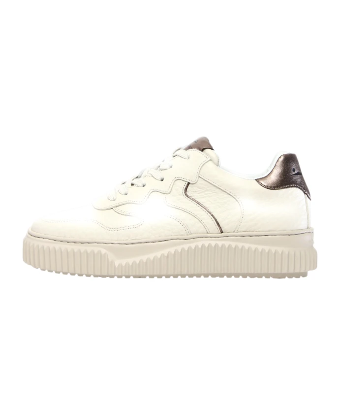 Voile Blanche - Кроссовки Laura Macro Bottle/Козья кожа: Эти кроссовки сочетают в себе высококачественные материалы и изысканный дизайн, верх выполнен из кожи Macro Bottle и металлизированной козьей кожи. Кожаная подкладка обеспечивает комфорт и воздухопроницаемость, а резиновая подошва - прочность и надежное сцепление. Элегантный и функциональный стиль, идеально подходящий как для изысканных, так и для повседневных образов. Ключевые особенности: Верх - кожа Macro Bottle и металлизированная козья кожа, Подкладка - дышащая кожа, Подошва - прочная резина с отличным сцеплением, Посадка - стандартная, Детали - элегантный и функциональный дизайн.