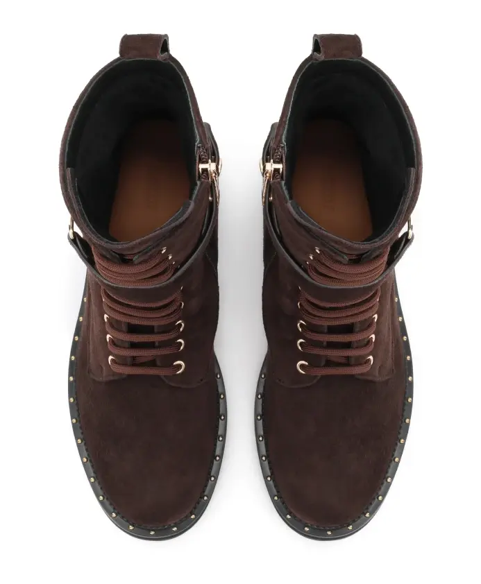 Ботинки Kazar TRISH сочетают в себе замшевую конструкцию средней высоты и практичные детали для повседневной носки. Отличительной особенностью является съемный декоративный ремешок с металлической пряжкой, позволяющий индивидуально настроить ботинки. Ключевые характеристики: Коричневый | Замша | Прочная рифленая подошва для сцепления | Комфортны в холодную погоду | Съемный ремешок | Внутренняя молния для удобства надевания и снимания | Шнуровка | Высота голенища - средняя | Декоративный съемный ремешок с металлической пряжкой | Классическая шнуровка | Внутренняя молния | Состав и уход: Замша | Козья кожа (подкладка) | Синтетическая подошва