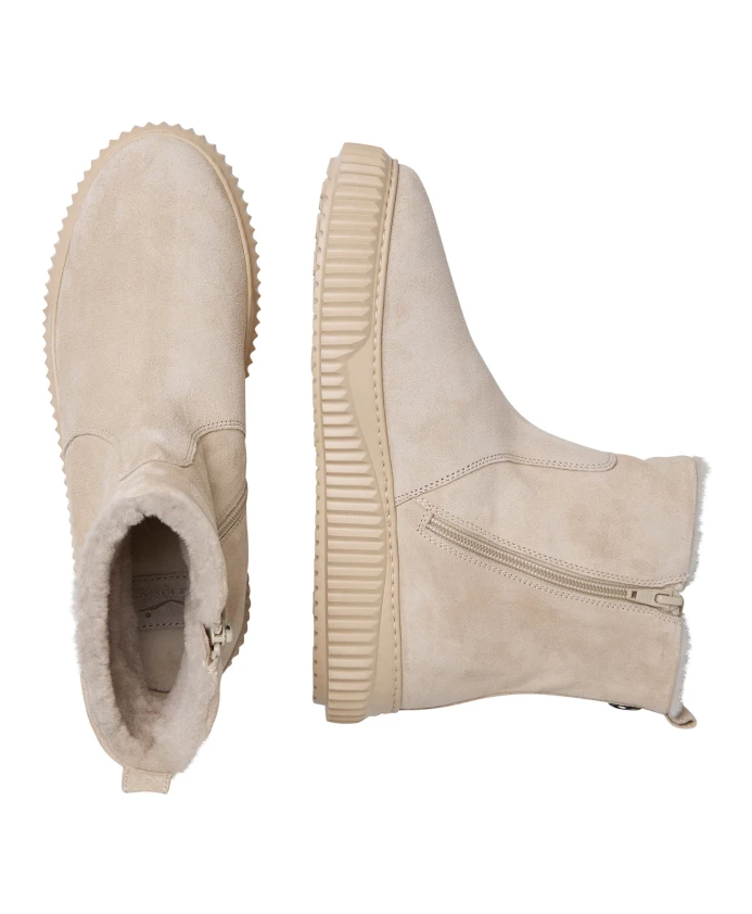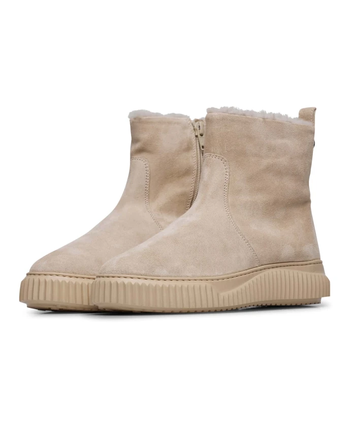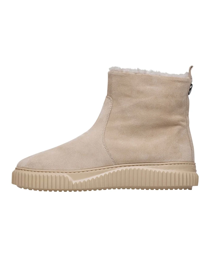 Замшевые ботильоны Voile Blanche MAICAH сочетают в себе мягкий замшевый верх и шерстяную подкладку для комфорта в течение всего дня. Разработанные для надежного сцепления и легкой регулировки посадки, эти ботильоны обладают следующими ключевыми характеристиками: Бежевый | Замша | Прочная, гибкая резиновая подошва | Устойчивость и сцепление в любых погодных условиях | Эластичная застежка для индивидуальной подгонки | Шерстяная подкладка и стелька для дополнительного комфорта | Высота до щиколотки | Изысканный, функциональный дизайн | Эластичная вставка | Состав и уход: Замша (верх) | Шерсть (подкладка) | Шерсть (стелька) | Резина (подошва)