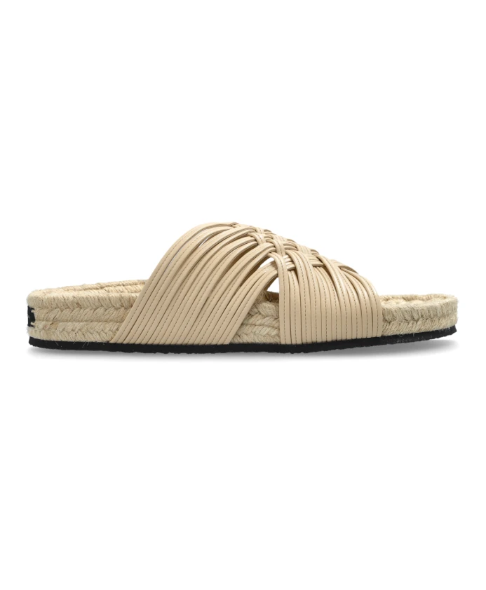 Откройте для себя неповторимую элегантность бежевых шлепанцев SLIDES с плетеным дизайном от Стеллы Маккартни, воплощающих в себе суть эксклюзивного стиля и дизайна. Эти исключительные шлепанцы, входящие в известную коллекцию, сочетают минималистичную форму с изысканной плетеной деталью. Они имеют плоскую конструкцию и простую резиновую подошву, обеспечивая максимальный комфорт и удобство ношения. Верхняя часть шлепанцев, состоящая из плетеных ремешков, образует тонкий эстетичный узор, подчеркивающий летний, повседневный характер обуви. Внутренняя часть шлепанцев отделана приятным на ощупь материалом, обеспечивающим дополнительный комфорт.