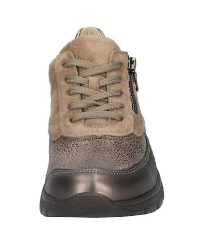 Кроссовки Waldläufer K-Ramona сочетают в себе повседневный стиль и комфорт на весь день. Они оснащены регулируемой шнуровкой и прочной подошвой для надежной поддержки в течение всего дня. Ключевые особенности: Бежевый цвет | Кожа | Прочная подошва для хорошего сцепления | Гибкая подошва для комфортной ходьбы | Шнуровка для регулируемой посадки | Съемная стелька; подходит для ортопедических вставок | Низкий силуэт | Круглый носок | Универсальный стиль для повседневной носки | Размеры и посадка: Высота каблука: 2 см | Стандартная посадка (соответствует размеру) | Состав материала и уход: Верх: Кожа | Подкладка: Текстиль | Подошва: Синтетика