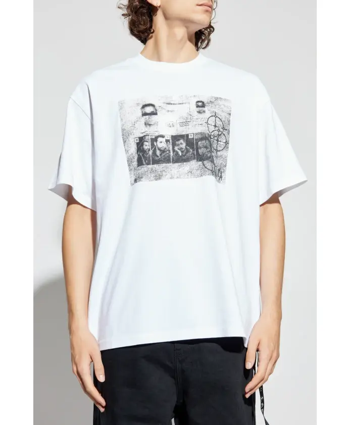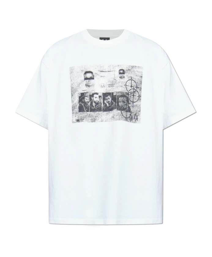 Футболка с логотипом 44 Label Group сочетает в себе свободный, уличный силуэт и яркую фотографическую графику, создавая оригинальный образ, который можно носить как в городе, так и вечером. Ключевые особенности: Белый | Хлопок | Мягкая на ощупь | Прочная ткань | Круглый вырез | Короткие рукава | Черно-белый графический принт спереди | Смелый узор на спине | Геометрические линии и контуры | Рисунок, вдохновленный документальной фотографией | Размеры и посадка: Рост модели: 193 см | Обхват груди: 95 см | Обхват талии: 82 см | Обхват бедер: 93 см | Модель носит размер: L | Свободный крой | Слегка свободный силуэт | Состав и уход: 100% хлопок
