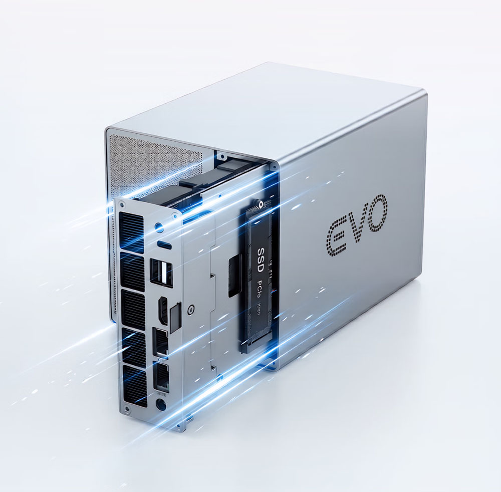 Сетевое хранилище Feiniu EVO2 представляет собой высокопроизводительное решение для организации домашнего или офисного хранилища данных. Устройство оснащено гибкими возможностями расширения благодаря наличию двух отсеков для HDD/SSD дисков формата 3.5/2.5 дюйма, а также трем слотам для M.2 NVMe накопителей (два PCIe 3.0 x1 с поддержкой до 4 ТБ каждый и один PCIe 3.0 x2). За производительность системы отвечает процессор Intel N150 с интегрированной графикой. Система поддерживает создание RAID-массивов для повышения надежности хранения данных и оснащена эффективной системой активного охлаждения.