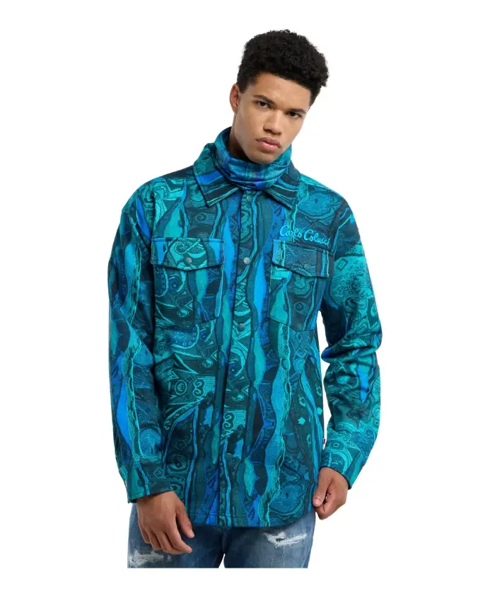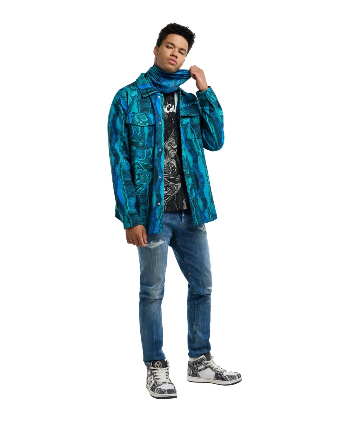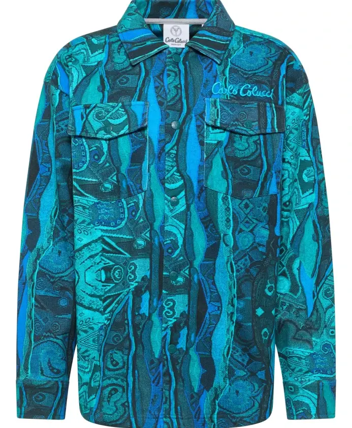 Рубашка оверсайз Carlo Colucci - Retro Vibes сочетает в себе неоновый принт по всей поверхности и свободный ретро-силуэт, что делает ее универсальной как для дневного, так и для вечернего образа. Ключевые особенности: Синий | Бирюзовый | Хлопок | Плотный хлопок (400 г/м²) | Застежка на пуговицы спереди | Вышивка логотипа на груди | Можно носить расстегнутой или застегнутой | Воротник в стиле ретро | Неоновый принт по всей поверхности | Спущенные плечи | Размеры и посадка: Рост модели 1,82 м, размер L | Свободный крой | Расслабленный крой | Спущенные плечи | Состав и уход: 100% хлопок | Деликатная стирка при 30°C; см. этикетку по уходу.
