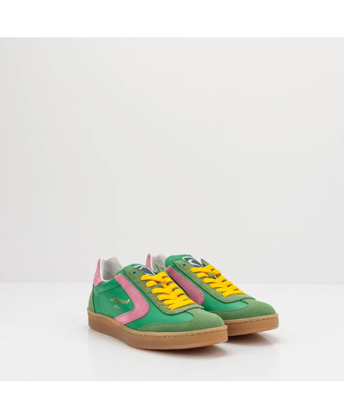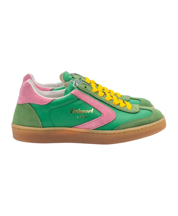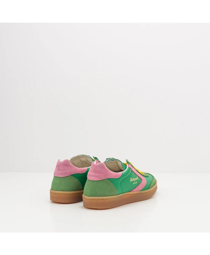 Кроссовки Valsport Olimpia сочетают в себе кожаные и замшевые накладки с яркими акцентами, создавая эффектный образ в стиле ретро. Изготовленные вручную в Италии, они сочетают винтажный стиль с повседневным комфортом. Ключевые особенности: Разноцветные | Зеленый | Кожа и замша | Съемная стелька | Кожаная подкладка | Замшевые и кожаные накладки | Розовый замшевый каблук и деталь в виде бумеранга | Желтые хлопковые шнурки | Резиновая подошва медового цвета | Ручная работа | Размеры и посадка: Высота подошвы: 2 см | Высота каблука: 2,5 см | Стандартная посадка | Состав и уход: Верх: Кожа и замша | Внутренняя часть: Кожа | Подошва: Резина