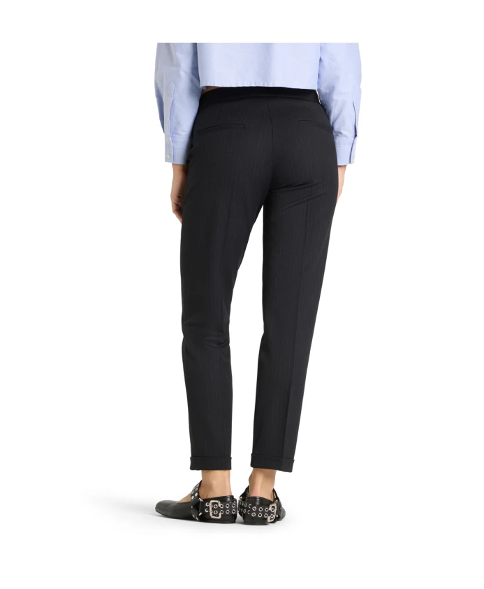 Брюки Kim Straight от Cambio сочетают классический полосатый дизайн с эластичным поясом для исключительного комфорта. Узкие, слегка зауженные штанины и небольшой подворот делают их универсальными как для спортивных, так и для элегантных образов, а также обеспечивают дополнительное тепло в прохладные дни. Ключевые особенности: Синий | Глубокий темно-синий полосатый узор | Полиэстер | Теплые | Эластичный пояс | Боковые карманы | Полосатый узор | Небольшой подворот | Размер и посадка: Соответствует размеру | Узкий крой | Состав ткани и уход: 62% полиэстер | 26% вискоза | 9% шерсть | 3% эластан | Машинная стирка при 30°C (цветные вещи).