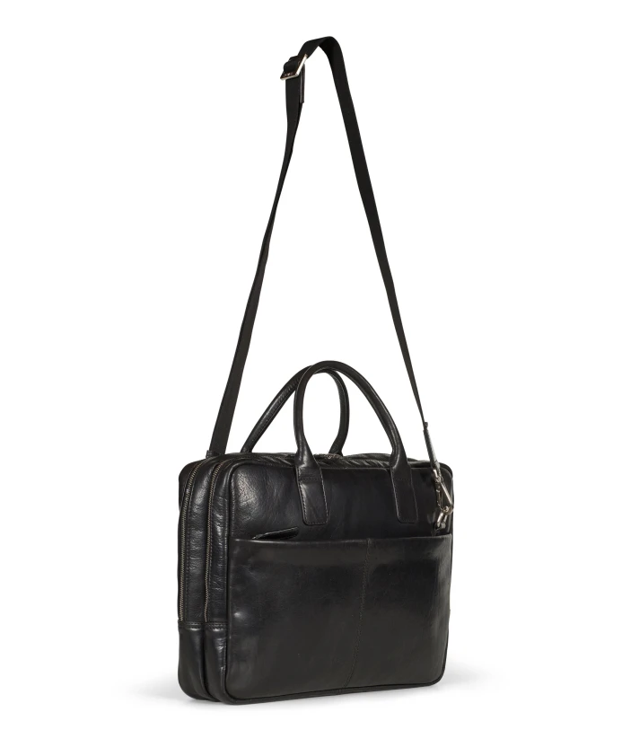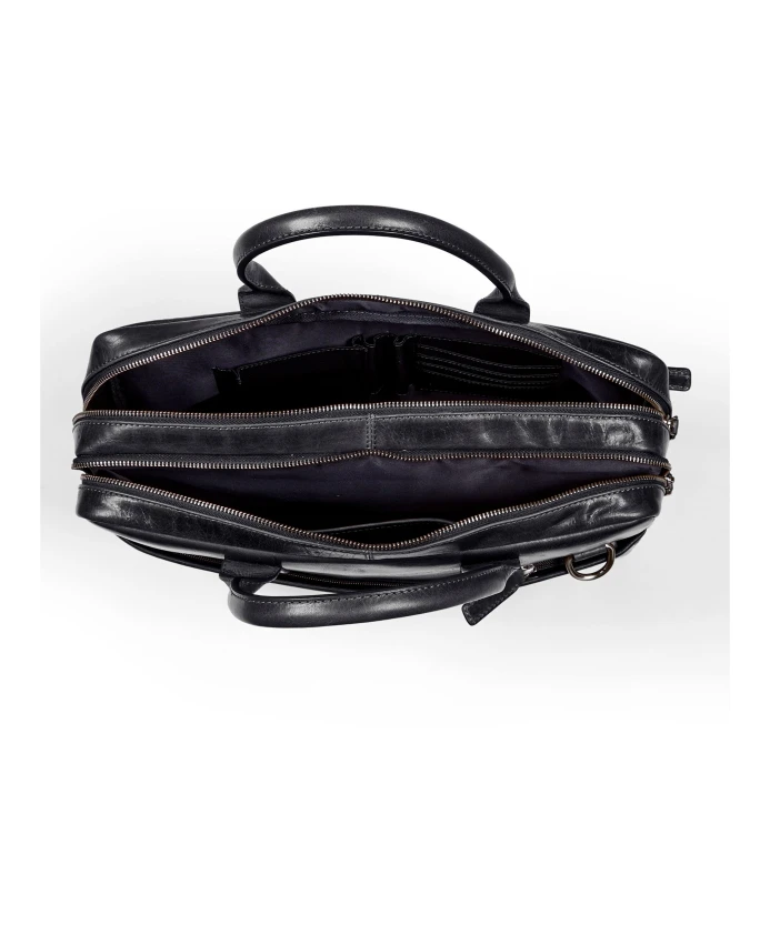 Сумка для ноутбука Howard London Stanley - это изготовленная вручную сумка из коровьей кожи, предназначенная для ежедневных поездок на работу и путешествий. Она оснащена мягким отделением для ноутбука и множеством карманов на молнии для организованного и безопасного хранения. Ключевые особенности: Черный цвет | Коровья кожа | Мягкое отделение для ноутбука | Два основных отделения на молнии | Задний карман на молнии | Внутренние накладные карманы | Регулируемый и съемный плечевой ремень | Фурнитура из матового серебра | Ручная работа | Детали из кожи | Размеры: Ш39 x В29 x Г8 см | Состав и уход: Коровья кожа | Полиэстеровая подкладка