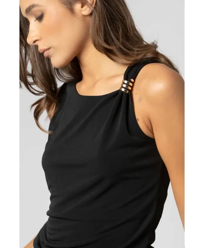 Топ Kocca HUPAX - это облегающий топ в стиле жилета, созданный для непринужденного многослойного образа. Он имеет высокий, слегка изогнутый вырез и асимметричную деталь в виде бретелей. Сочетание приталенного силуэта и аккуратных двойных швов делает его идеальным для повседневной носки. Ключевые особенности: Черный | Черный | Полиэстер | Декоративная застежка на бретелях | Двойная строчка | Высокий, слегка изогнутый вырез | Одна широкая бретель | Декоративная застежка | Длина до талии | Облегающий крой | Размеры и посадка: Облегающий крой | Длина до талии | Рост модели 175 см, размер S/42 | Состав и уход: 95% полиэстер | 5% эластан