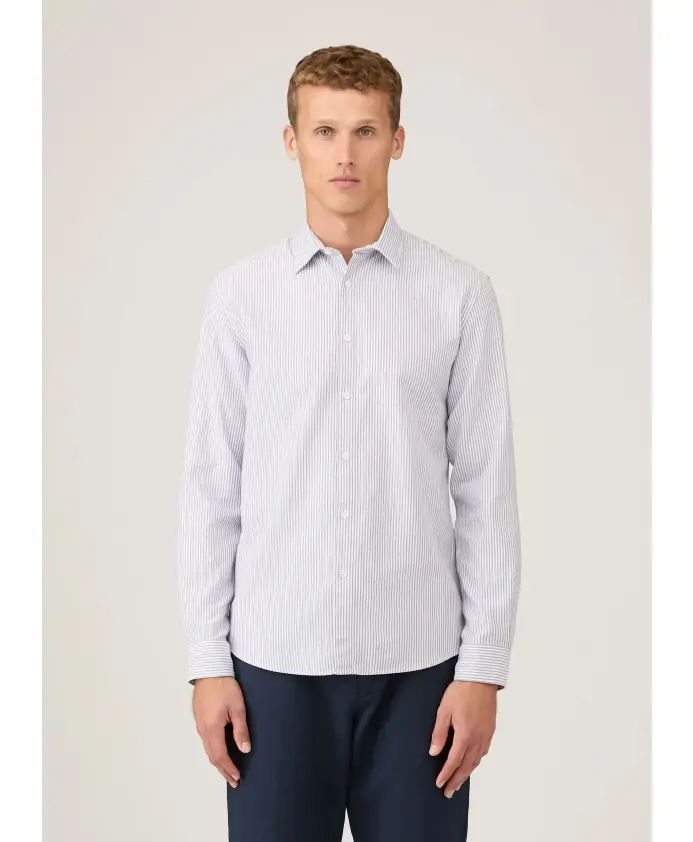 Рубашка Sunspel Oxford - это простая повседневная рубашка из итальянского хлопка Oxford, обеспечивающая мягкую и свободную посадку. Ее изысканный полосатый дизайн делает ее одинаково подходящей как для работы, так и для выходных. Основные характеристики: Синий | Белый | Темно-синий | Хлопок | Мягкая, выстиранная ткань | Дышащая ткань | Легкая ткань | Застежка на пуговицы | Полосатый узор | Чистый, минималистичный дизайн | Классический воротник | Размер и посадка: Стандартный крой | Соответствует размеру | Состав и уход: 100% хлопок | Бережная стирка при 30°C с вещами схожих цветов. Не сушить в сушильной машине. Возможна химчистка.