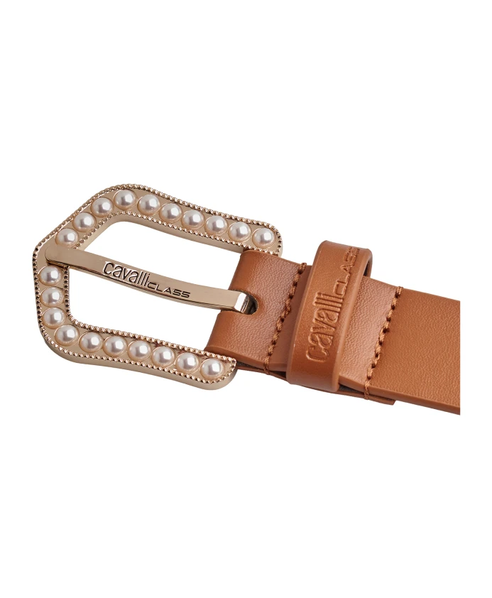Ремень с жемчужной пряжкой Cavalli Class, коричневый