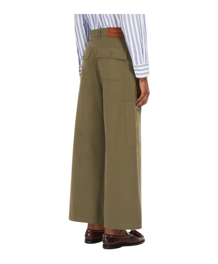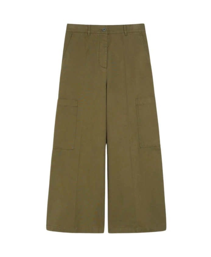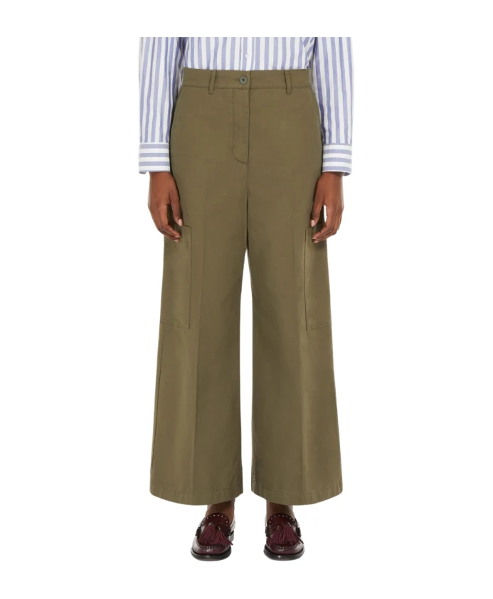 Откройте для себя укороченные брюки Max Mara Wide Cropped Trousers, искусно сшитые из чистого хлопкового канваса, обеспечивающего стильную и комфортную посадку. Эти брюки имеют широкие штанины и укороченный крой, идеально подходящий для создания разнообразных образов. Ключевые особенности: Цвет: Хаки | Хлопковый канвас | Застежка на пуговицу и молнию | Французские передние карманы | Накладные карманы с клапанами на пуговицах сзади | Накладные карманы вдоль штанин | Складки | Широкие штанины | Размеры и посадка: Стандартный крой | Состав и уход: 100% хлопок | Машинная стирка в холодной воде, сушка в барабане при низкой температуре