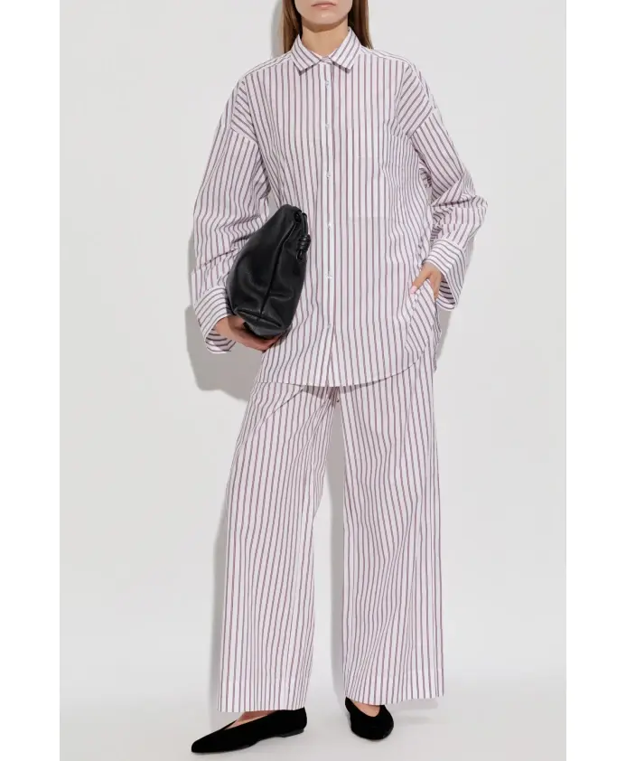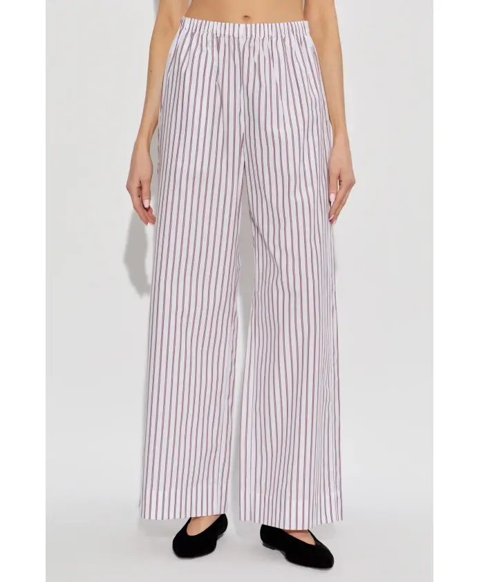 Брюки Cabello от By Malene Birger сочетают в себе изысканный скандинавский минимализм с широкими штанинами и свободным силуэтом. Вертикальные бордовые полосы и широкий эластичный пояс визуально удлиняют ноги и обеспечивают комфорт в течение всего дня. Ключевые особенности: Белый | Хлопок | Легкий | Широкий эластичный пояс | Боковые карманы | Прямой, широкий крой | Вертикальные бордовые полосы | Минималистичный дизайн без логотипа | Свободный крой | Размеры и посадка: Свободный крой | Прямой, широкий крой | Свободный силуэт | Эластичный пояс для удобной и надежной посадки | Состав и уход: 100% хлопок | Машинная стирка при 30°C.