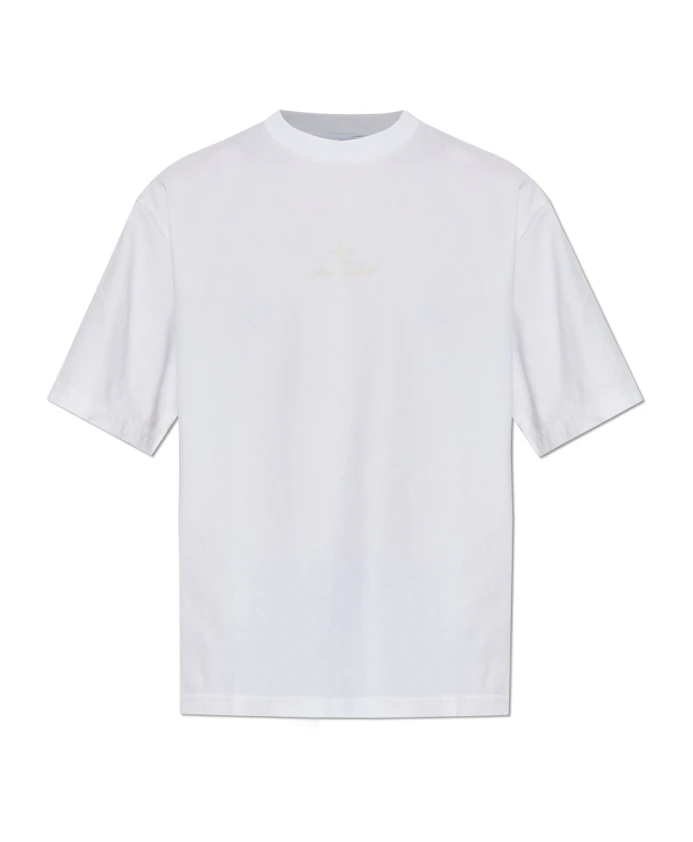 Футболка Stone Island Logo - это минималистичная белая футболка из тонкого хлопка с едва заметным вышитым логотипом на груди. Она сочетает в себе классический, свободный силуэт и изысканный повседневный стиль. Ключевые особенности: Белый | Хлопок | Мягкая на ощупь | Удобная в носке | Круглый вырез | Короткие рукава | Едва заметный вышитый логотип Stone Island на груди | Прямой низ | Минималистичный дизайн | Размеры и посадка: Рост: 193 см | Обхват груди: 95 см | Обхват талии: 82 см | Обхват бедер: 93 см | Модель носит размер: M | Классический, свободный крой | Слегка приспущенные плечи | Прямой низ | Состав и уход: 100% хлопок