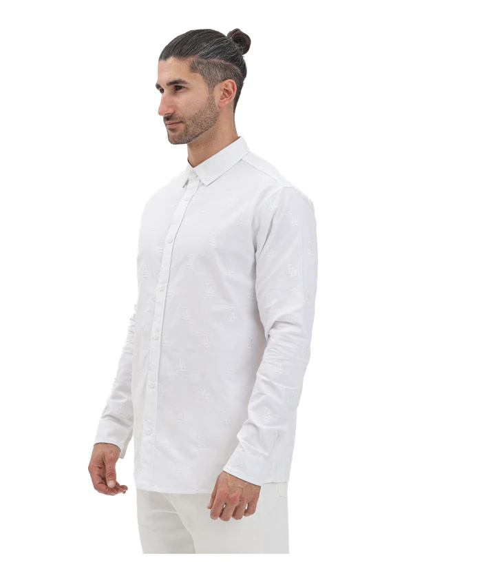 Подчеркните свой повседневный стиль с помощью этой белой мужской рубашки с длинными рукавами New Era LA Dodgers MLB с монограммой, застежкой на пуговицы и классическим воротником. Вышивка логотипа LA Dodgers в тон ткани добавляет спортивный, но в то же время изысканный штрих. Идеально подходит для тех, кто хочет сочетать формальный стиль с элементами уличной моды, для создания элегантных повседневных образов или для неформальных случаев. Модель носит размер L, рост 187 см. Рекомендуется стирка и глажка при средней температуре. Сезон осень/зима. Белая мужская рубашка с длинными рукавами, стандартный крой, осень/зима 60667824.