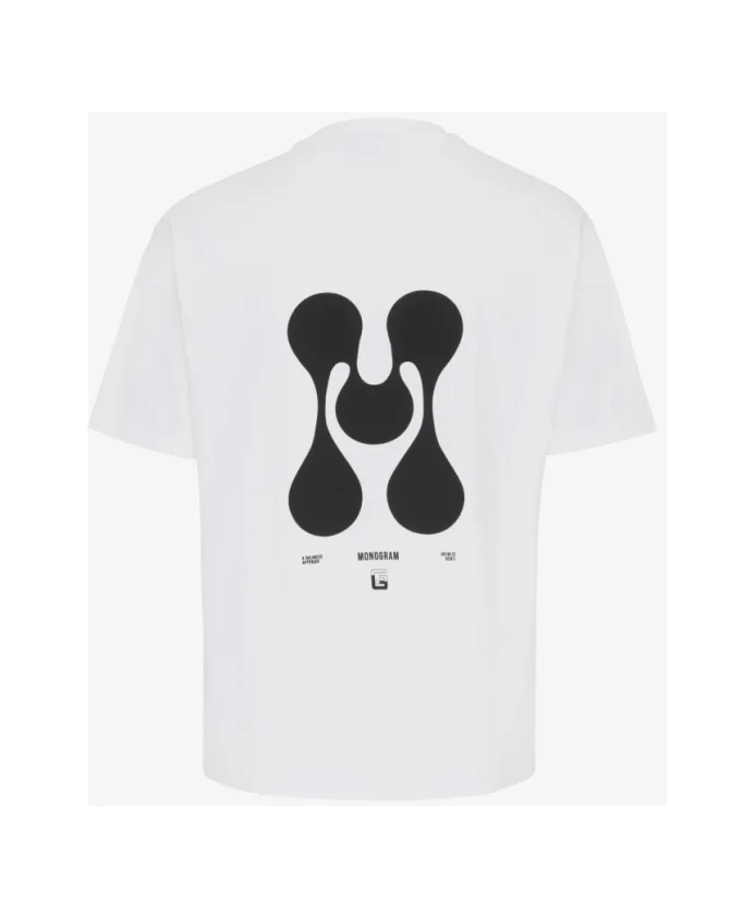 Футболка Genti Monogram J3126 3226 от Genti - это белая футболка с круглым вырезом и крупным абстрактным монограммным рисунком на спине, создающим современный, выразительный образ. Она сочетает в себе минималистичный дизайн передней части и эффектный принт на спине, что делает ее подходящей для повседневной носки и создания визуального эффекта. Ключевые особенности: Белый цвет | Круглый вырез | Короткие рукава | Крупный абстрактный черный монограммный рисунок на спине | Минималистичный дизайн передней части | Незаметный логотип под рисунком на спине | Высококонтрастный монохромный дизайн | Размеры и посадка: Стандартный крой