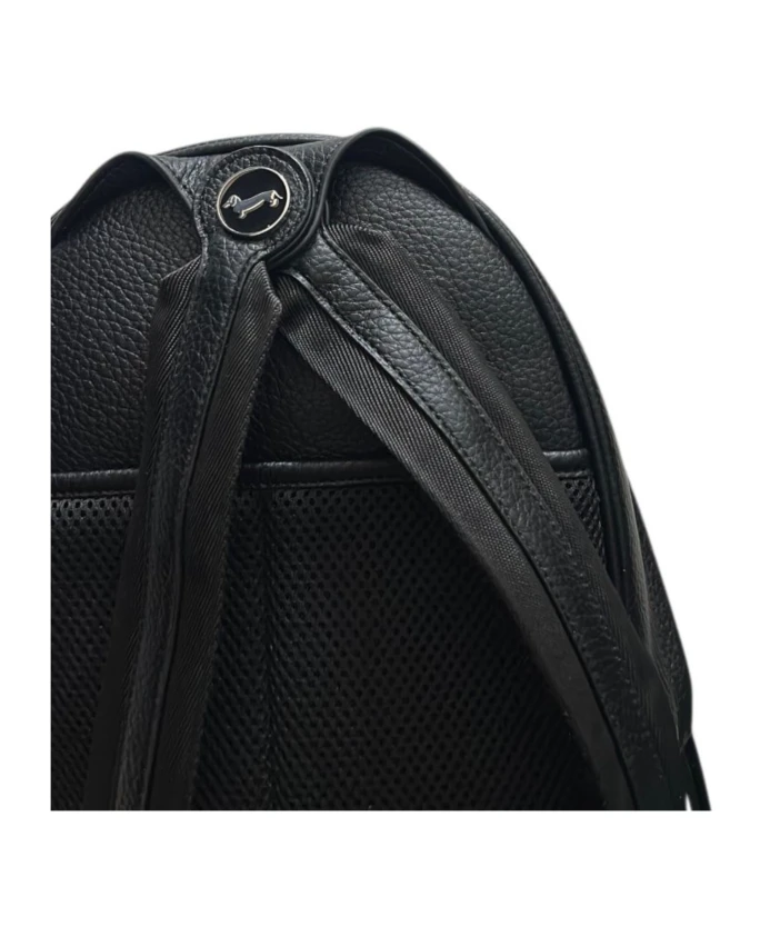 Рюкзак Harmont & Blaine, разработанный для ежедневных поездок на работу и коротких деловых командировок. Он сочетает в себе компактный, структурированный силуэт с фирменным изображением таксы, мгновенно узнаваемым. Ключевые особенности: Черный цвет | Верхняя ручка для переноски | Слегка мягкие регулируемые плечевые лямки | Несколько отделений на молнии | Внутренняя организация (карманы на молнии и открытые карманы) | Компактный, структурированный силуэт | Логотип таксы | Передний карман с фирменным язычком на молнии | Состав и уход: Не стирать; Не отбеливать; Не сушить в сушильной машине; Не гладить; Не подвергать химчистке