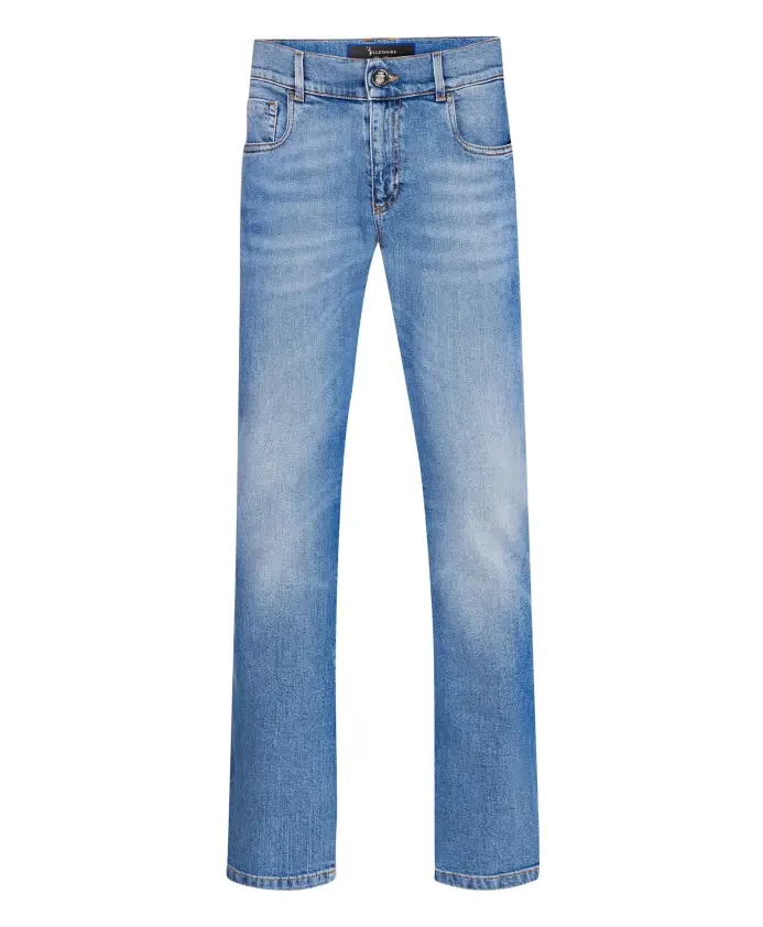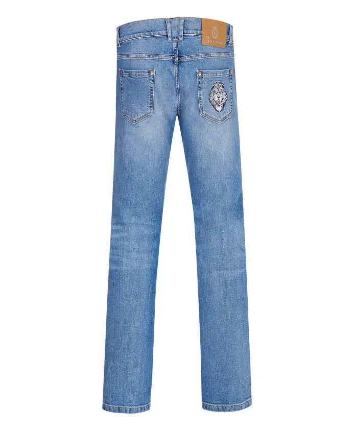 Джинсы Billionaire Jeans Slim Fit LION - это джинсы из эластичного денима с эффектом потертости, с пятью карманами, отличающиеся вышивкой в виде льва на правом заднем кармане и застежкой на металлическую пуговицу с эмблемой Дома моды. Ключевые особенности: Синий | Светло-синий | Эластичный деним | Эффект потертости | 5 карманов | Застежка-молния | Металлическая пуговица | Заклепки с металлическими эмблемами | Вышивка в виде льва на правом заднем кармане | Кожаная этикетка с ламинированным принтом | Декоративная строчка в тон | Эмблема Дома моды на металлической пуговице | Размеры и посадка: Ширина низа: 17,5 см | Узкий крой