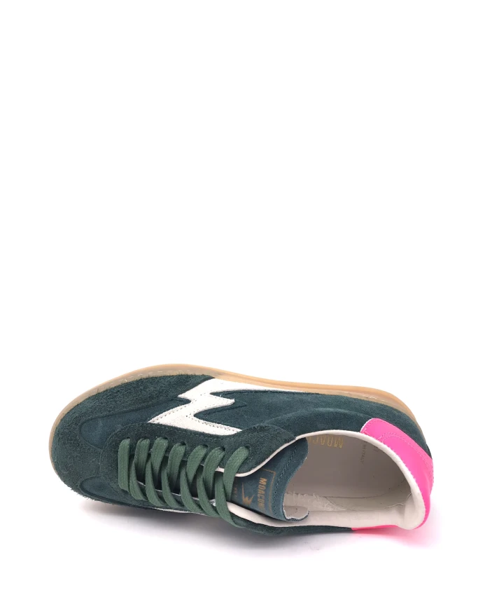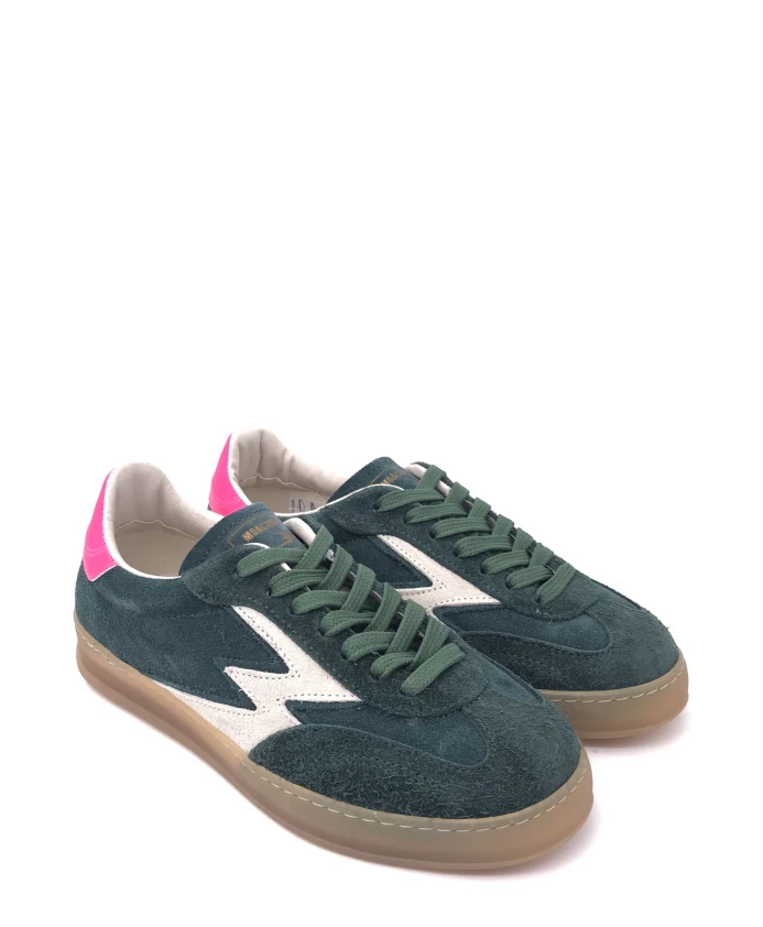 Кроссовки MOA - Master of Arts MG672 выполнены в ретро-стиле из замши с эффектной, флуоресцентной фуксиевой кожаной вставкой на пятке. Эти кроссовки на шнуровке сочетают замшевый верх со стеганой янтарной резиновой подошвой для повседневного стиля и сцепления. Ключевые особенности: Зеленый | Зеленый | Фуксия | Замша | Шнуровка | Мягкая стелька из латекса и кожи | Подкладка из кожи и хлопка | Ретро-замшевый верх | Флуоресцентная фуксиевая кожаная задняя часть | Замшевый язычок в тон | Белый замшевый боковой логотип | Зеленые шнурки | Стеганая янтарная резиновая подошва | Состав и уход: Замша | Кожа | Хлопок | Латекс | Резина