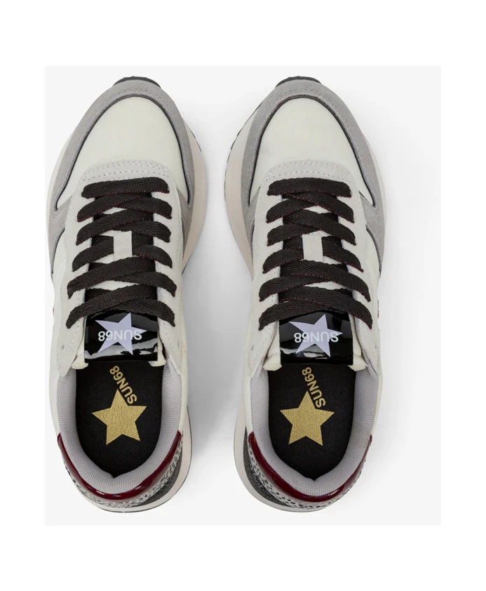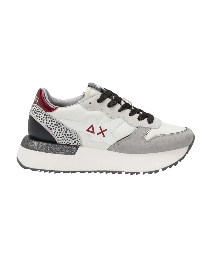 Кроссовки Sun68 Big Stargirl сочетают в себе линии, вдохновленные беговой обувью, с привлекательными деталями из комбинированных материалов для повседневной городской носки. Верх из нейлона и замши с акцентами в виде анималистического принта и блестящая подошва Phylon создают спортивный, но в то же время дерзкий образ. Ключевые особенности: Белый | Bianco panna | Нейлон, замша | Подошва Phylon для легкой амортизации | Конструкция в стиле беговой обуви | Шнуровка с люрексом | Комбинированные накладки из нейлона и замши | Детали в виде анималистического принта | Блестящая подошва Phylon | Силуэт, вдохновленный беговой обувью
