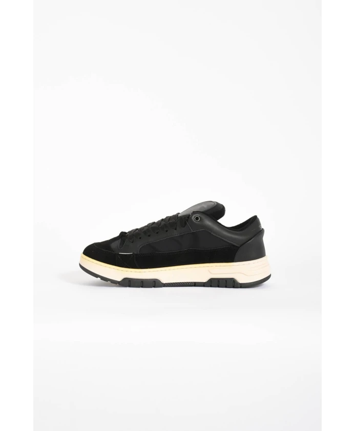 Кроссовки SANTHA Model 1 сочетают в себе верх из кожи и нейлона с видимой строчкой и двойной шнуровкой спереди, что делает их прочными повседневными кроссовками, изготовленными в Италии. Ключевые особенности: Черный | Кожа | Двойная шнуровка спереди | Мягкий язычок с логотипом | Мягкий воротник | Подкладка из хлопковой махровой ткани | Приподнятая кожаная стелька | Прошитая подошва (TR) | Видимая строчка | Вставка на язычке с логотипом | Усиленная задняя часть с логотипом | Размер и посадка: Высота подошвы: 3 - 4 | Состав материала и уход: Кожа (верх) | Нейлон (верх) | Хлопок (подкладка) | Кожа (стелька) | TR (подошва)