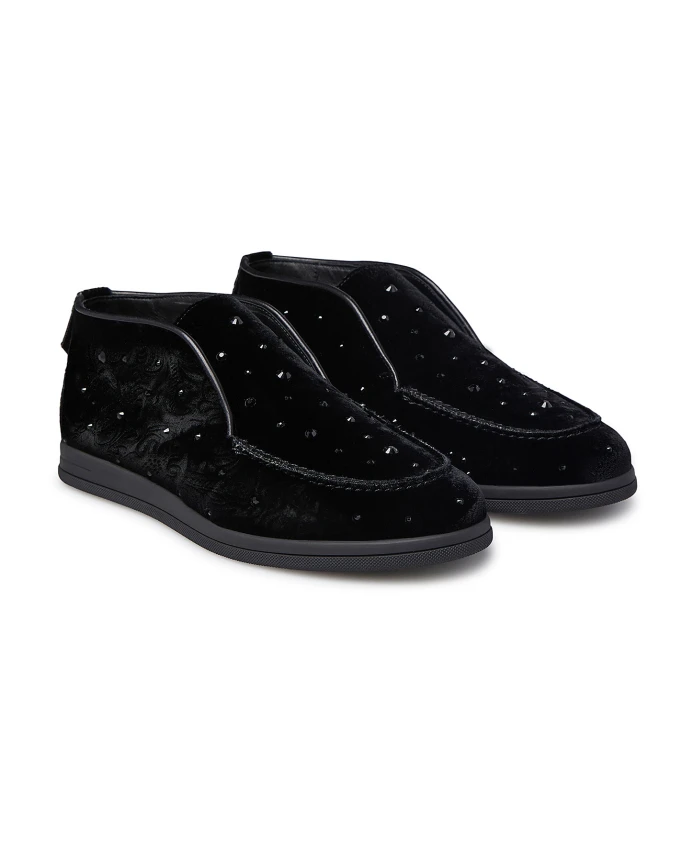 Бархатные лоферы, украшенные кристаллами Loriblu, черный