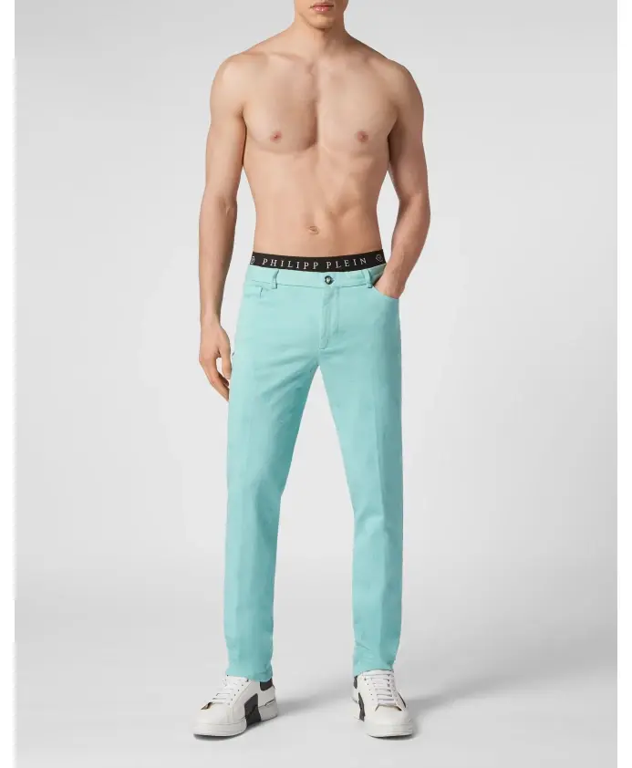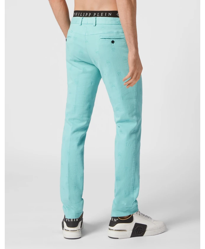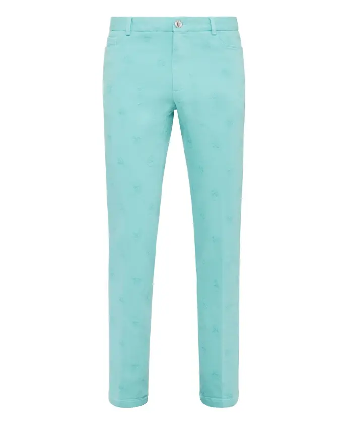 Брюки-чиносы Philipp Plein Skull сочетают в себе эластичный хлопковый габардин и вышитый по всей поверхности мотив черепа, создавая стильную повседневную базовую модель. Ключевые особенности: Синий | Светло-синий | Эластичный хлопковый габардин | Эластичная ткань | Пять карманов | Застежка на одну металлическую пуговицу | Металлический шестиугольный логотип PP на кожаной нашивке | Вышитый по всей поверхности мотив черепа | Стиль чинос | Кожаная нашивка с логотипом из сафьяновой кожи на заднем кармане | Размеры и посадка: Чинос | Состав ткани и уход: Ткань: 97% хлопок, 3% эластан | Подкладка: 65% полиэстер, 35% хлопок