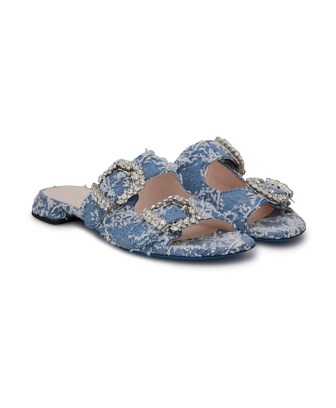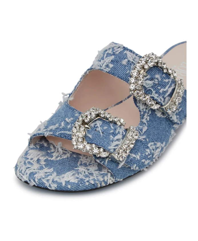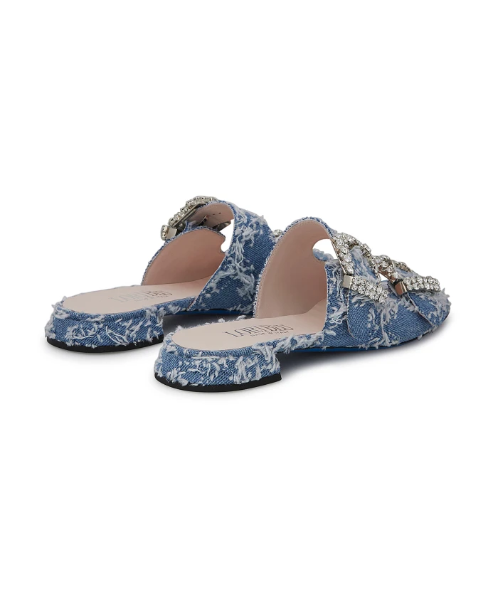 Мюли Loriblu с декоративными пряжками, украшенными драгоценными камнями, сочетают в себе джинсовый верх, декоративные пряжки и низкий, расклешенный каблук, создавая элегантный повседневный образ. Кожаная подошва и подкладка дополняют изящный, удобный силуэт. Ключевые особенности: Синие джинсы | Джинсовая ткань | Застежка на ремешке с пряжкой спереди | Низкий, расклешенный каблук | Декоративные пряжки, украшенные драгоценными камнями | Деталь на ремешке спереди | Кожаная подошва и подкладка | Размеры и посадка: Каблук: 20 мм | Стандартная посадка | Материал и уход: Джинсовая ткань (верх) | Кожа (подкладка и подошва)