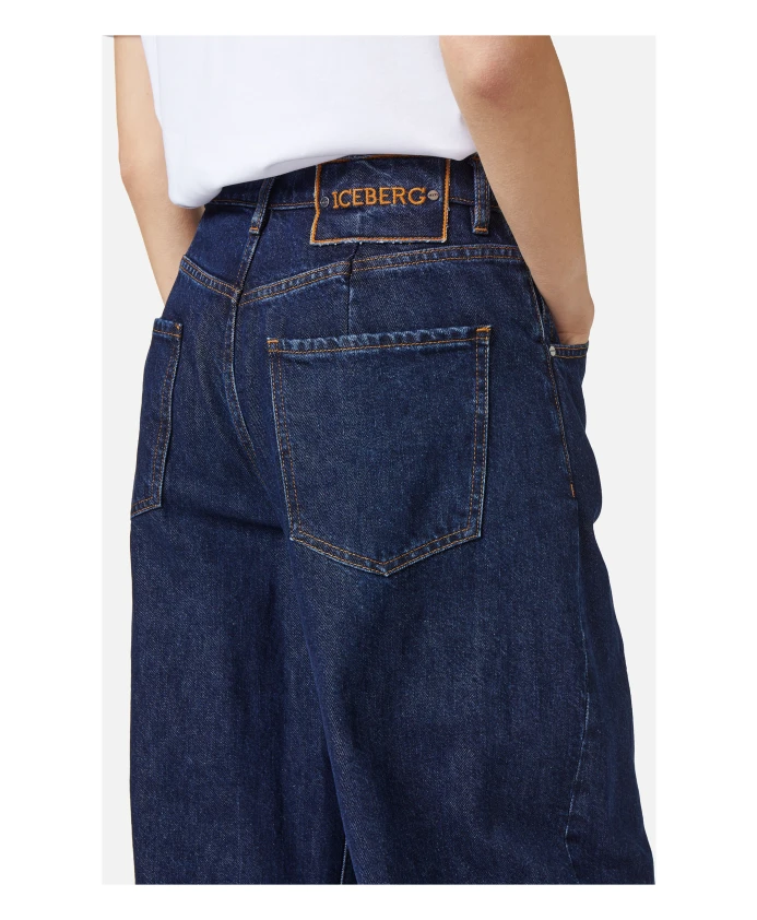 Джинсы-Бочонок из индиго-синего денима Iceberg, синий