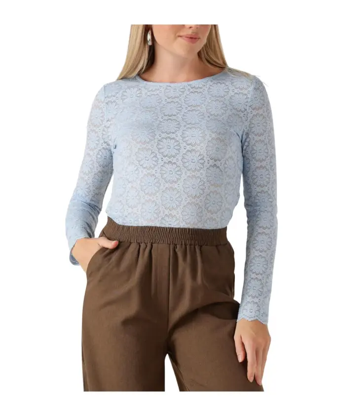 Топ Ydence Loiza - это кружевной топ с длинными рукавами, сочетающий в себе нежное цветочное кружево и фестончатые края с эластичной тканью. Он идеально подходит в качестве изысканного элемента многослойного образа для повседневных прогулок или уютных дневных выходов. Ключевые особенности: Светло-голубой | Кружево | Эластичная ткань для комфорта | Идеально подходит для многослойных образов | Круглый вырез | Длинные рукава | Цветочный кружевной узор | Фестончатые края | Размеры и посадка: Общая длина: 61 см (размер S) | Длина рукава: 62 см (размер S) | Приталенный крой | Состав ткани и уход: 90% нейлон, 10% эластан