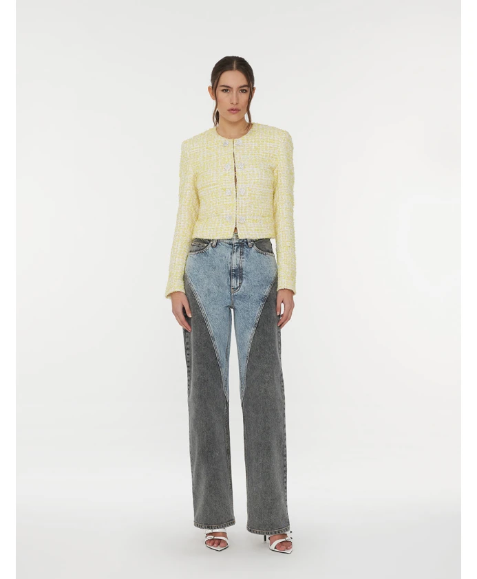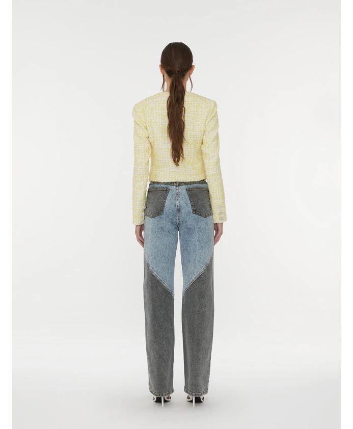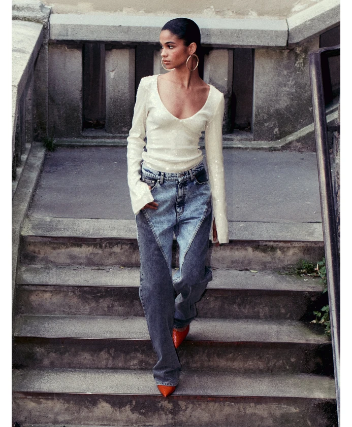 Подчеркните свой безупречный стиль с помощью наших джинсов с высокой талией и прямыми штанинами от ROTATE Birger Christensen. Созданные с тщательным вниманием к деталям, эти джинсы сочетают в себе комфорт и элегантный внешний вид. Они имеют силуэт с высокой талией, прямой крой штанин, пять карманов с прочными заклепками и уникальную лоскутную отделку из синей и темно-серой джинсовой ткани. Изготовленные из 100% хлопка, эти джинсы - обязательный элемент гардероба для модной женщины. Отделка выполнена оригинальной джинсовой нитью, логотипом-жакроном на нашивке и пуговицей с логотипом для придания особого шарма.