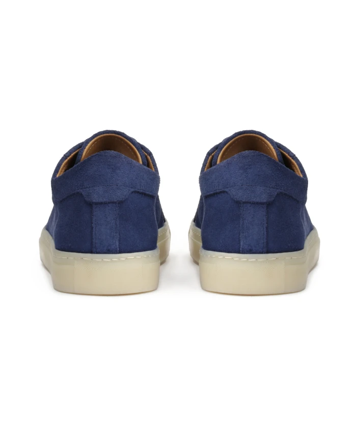Темно-синие кроссовки - элегантный выбор, сочетающий классический стиль с современным дизайном. Изготовленные из высококачественной замши, они отличаются мягкостью, долговечностью и тонкой текстурой, придающей обуви изысканность. Низкий дизайн с классической шнуровкой обеспечивает удобную посадку и универсальный стиль, идеально подходящий для повседневной носки. Удобная подошва более светлого цвета создает тонкий контраст и подчеркивает современный вид обуви. Это универсальная модель для мужчин, ценящих качество, стиль и комфорт. Подкладка из натуральной кожи гарантирует гигиеничность и превосходный комфорт.