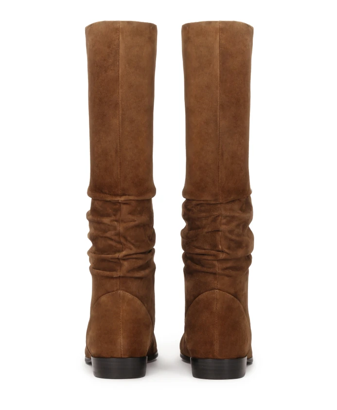 Эти светло-коричневые ботинки, изготовленные из высококачественной замши, впечатляют мягким верхом без шнурков, украшенным эффектной складкой, что придает им легкий и сдержанный характер. Плоская подошва обеспечивает комфорт без ущерба для стиля. Эта модель создана для женщин, которые любят расслабленный образ, но в изысканном, модном исполнении. Идеально сочетаются с короткими платьями, объемными пальто и повседневными нарядами, которые сочетают комфорт с трендами, достойными подиума. Мягкая подкладка из овчины гарантирует исключительный комфорт, а подкладка из искусственного меха согреет в прохладные дни.