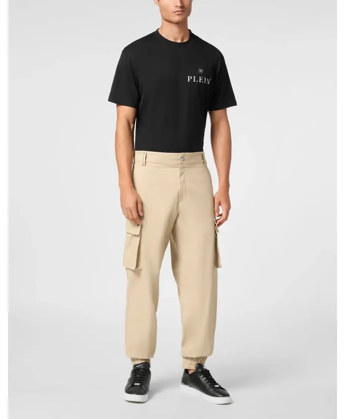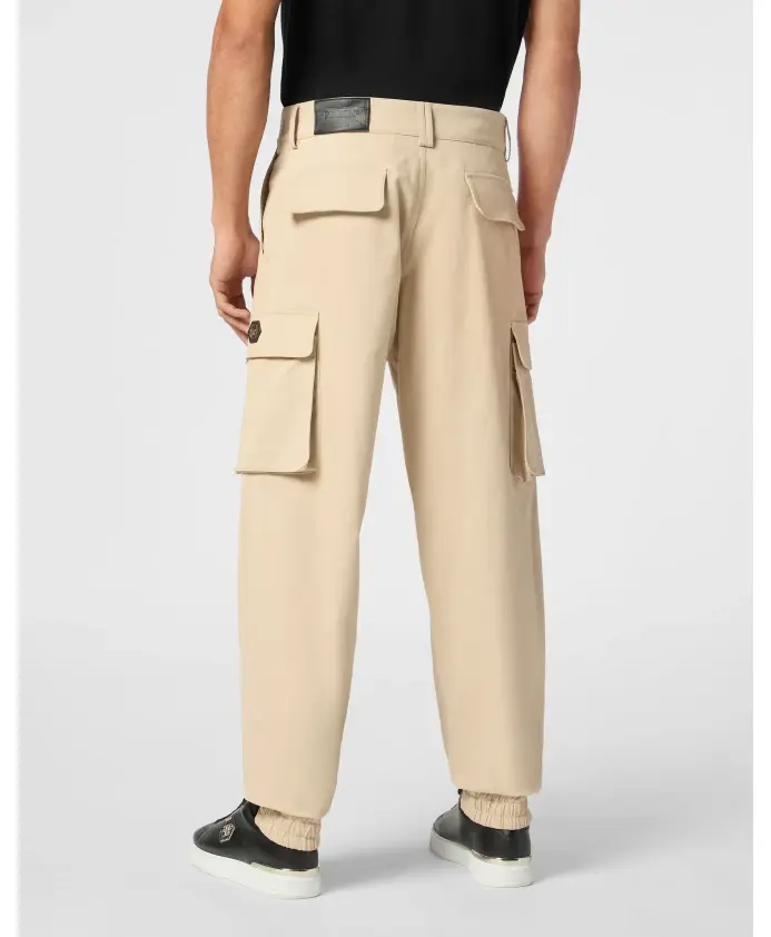 Длинные брюки-карго от Philipp Plein сочетают в себе спортивную функциональность и фирменные детали для создания образов в стиле стритстайл. Изготовленные из хлопкового габардина, с функциональными карманами и фирменной фурнитурой бренда, они идеально дополнят расслабленные спортивные наряды. Ключевые особенности: Бежевый | Хлопковый габардин | Карго-карманы | Боковые карманы | Эластичные манжеты со шнурком | Нашивка с логотипом | Металлическая пуговица с изображением черепа | Кожаная этикетка, пришитая сзади | Размеры и посадка: Карго-крой | Материал и уход: Ткань: 97% хлопок, 3% эластан | Кожа (этикетка)