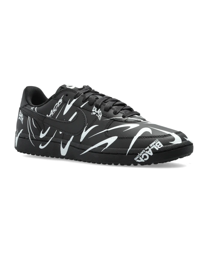 Comme des Garçons и Nike представляют кроссовки Field General 82 - совместную низкую модель, сочетающую матовый кожаный верх с яркими белыми принтами Swoosh, создающими коллекционный и модный образ. Ключевые особенности: Черный | Кожа | Прочная конструкция | Удобная внутренняя подкладка | Шнуровка | Резиновая подошва | Низкий силуэт с немного удлиненным носком | Матовый кожаный верх | Белый логотип Nike Swoosh и неровные надписи на поверхности | Детали лимитированной коллекции | Размеры и посадка: Высота подошвы в самой высокой точке: 3 см | Состав и уход: Верх: Кожа | Подкладка: Текстиль | Подошва: Резина