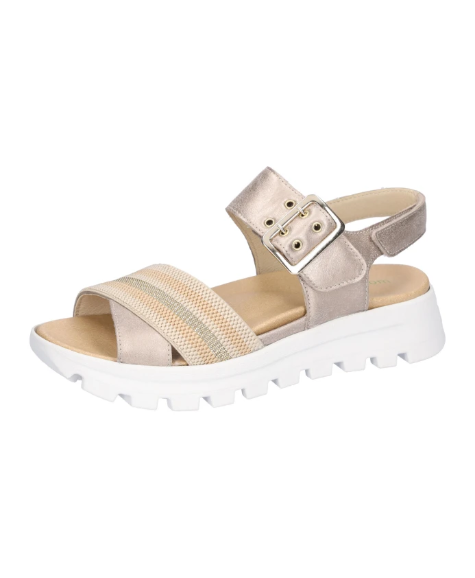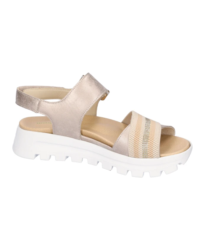 Сандалии Waldläufer H-Nele сочетают в себе верх из кожи наппа и гибкую полиуретановую подошву для комфортного повседневного ношения. Регулируемая застежка на липучке и съемная стелька позволяют подогнать сандалии по фигуре. Ключевые особенности: Бежевый | Каменный | Кожа наппа | Гибкая полиуретановая подошва | Легкая подошва | Съемная стелька | Регулируемая застежка на липучке | Открытый носок | Застежка на липучке в виде пряжки | Минималистичный силуэт сандалий | Размеры и посадка: Высота каблука: 2,5 см | Широкая посадка (H) | Состав и уход: Верх: Кожа наппа | Подкладка: Кожа | Подошва: Полиуретан (ПУ)