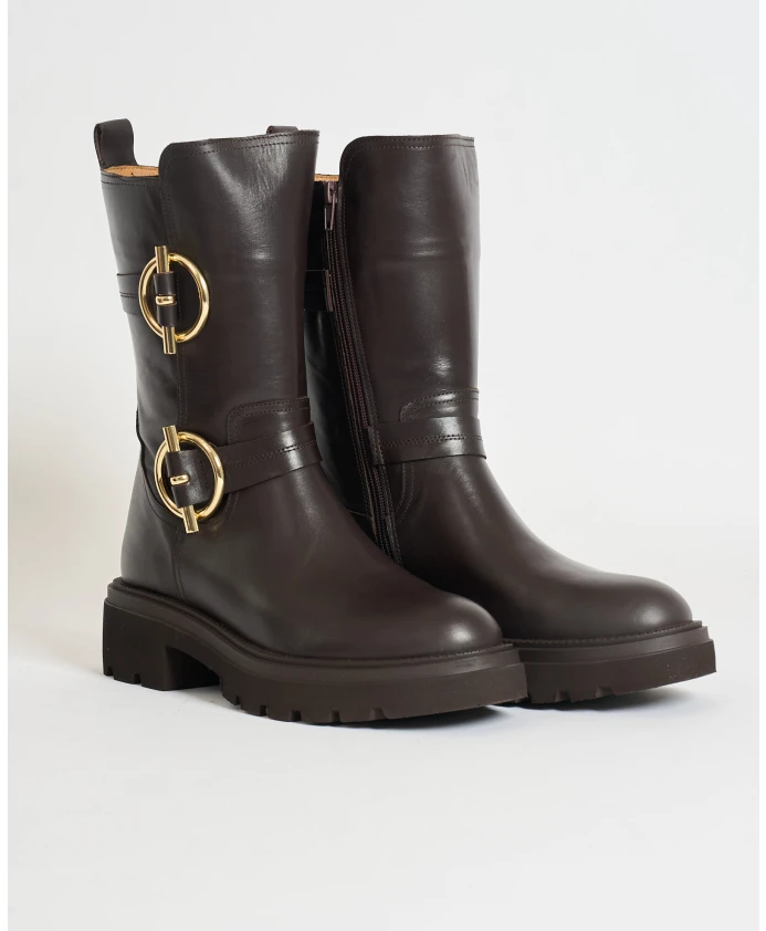 Ботинки Albano 3037 Combat Boot сочетают в себе мягкую телячью кожу, резиновую рифленую подошву и двойную фурнитуру золотистого цвета по бокам, создавая элегантные и прочные ботинки до щиколотки, подходящие для повседневной носки. Ключевые особенности: Коричневый | Телячья кожа | Резиновая рифленая подошва для сцепления и долговечности | Внутренняя застежка-молния | Петля для удобства надевания сзади | Силуэт армейских ботинок | Двойная металлическая фурнитура золотистого цвета по бокам | Высота до щиколотки | Состав и уход: Телячья кожа | Кожаная подкладка | Резиновая подошва | Металлическая фурнитура
