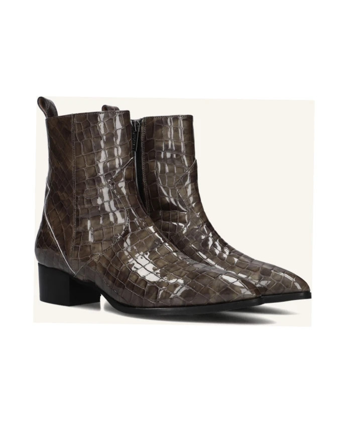 Ботильоны NOTRE-V 63231 с отделкой под крокодиловую кожу, заостренным носком и блочным каблуком высотой 4 см созданы для повседневной городской носки. Они идеально подходят для походов по магазинам или неформальных обедов, где комфорт и стиль имеют первостепенное значение. Ключевые особенности: Коричневый | Серо-коричневый | Кожа | Резиновая подошва для сцепления с мокрой поверхностью | Застежка-молния сбоку для удобства надевания и снимания | Заостренный носок | Блочный каблук 4 см | Крокодиловый принт | Размеры и посадка: Высота каблука: 4 см | Высота голенища: 18 см | Состав и уход: Кожа | Резина