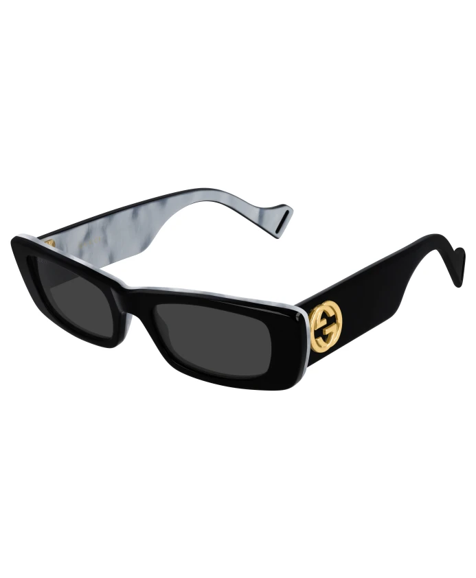 Солнцезащитные очки Gucci прямоугольной формы с тонкой ацетатной оправой, фирменным логотипом в виде переплетающихся букв G на дужках и серыми линзами для повседневной защиты от солнца. Элегантный прямоугольный силуэт легко дополнит как повседневный, так и элегантный образ. Ключевые особенности: Черный | Серый | Ацетат | Прямоугольная форма | Полная оправа | Тонкий силуэт | Логотип в виде переплетающихся букв G на дужках | Перламутровое покрытие | Размеры и посадка: Ширина линзы: 52 мм | Ширина переносицы: 20 мм | Длина дужки: 145 мм | Узкая посадка | Состав и уход: Оправа: Ацетат | Линзы: Нейлон