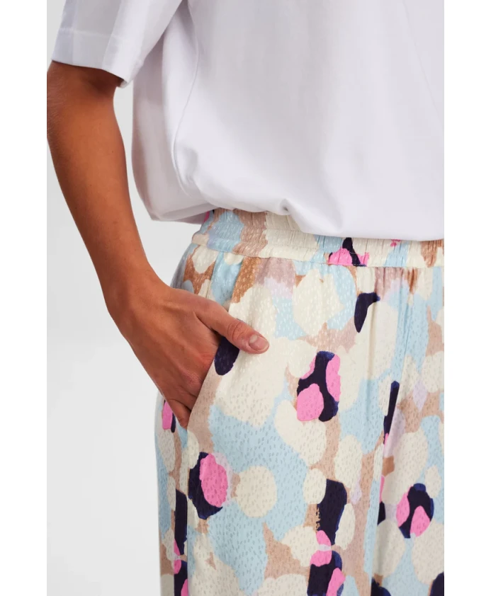 Брюки Nümph Nugracie от Nümph - это модель с широкими штанинами, украшенная игривым многоцветным принтом, идеально подходящая для теплой погоды и повседневной носки. Основные характеристики: Многоцветный | Синий | Вискоза | Дышащая ткань | Легкий вес | Широкие штанины | Принт по всей поверхности | Размеры и посадка: Широкая посадка | Материал и уход: 100% вискоза LENZING ECOVERO | Машинная стирка при 30°C (деликатный режим); Не отбеливать; Не сушить в сушильной машине; Гладить с изнанки при средней температуре; Стирать отдельно или с вещами схожего цвета; Не использовать кондиционер для белья.
