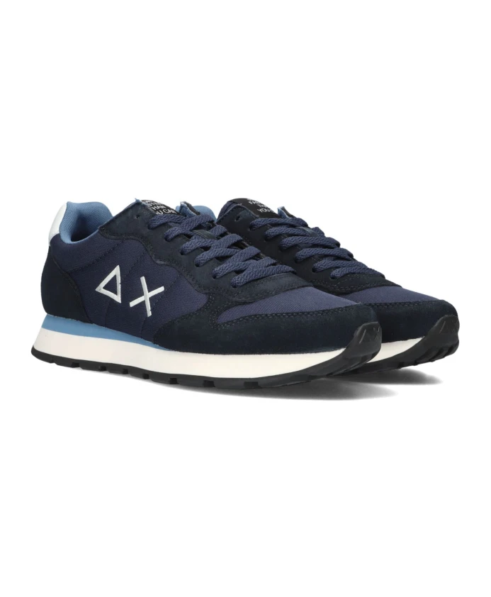 Откройте для себя универсальность кроссовок TOM SOLID от SUN68. Эти синие низкие кроссовки с закругленным носком и шнуровкой идеально подойдут мужчинам, которые хотят стильно провести осень и зиму. Текстильная подкладка обеспечивает комфорт, а резиновая подошва гарантирует сцепление с поверхностью во время прогулки в парке или посещения художественной галереи. Благодаря съемной стельке вы можете настроить их под себя. Сочетайте их с уютным шерстяным свитером и плотными джинсами для создания повседневного, но модного образа. Эти кроссовки - идеальный выбор для любого мужчины, следящего за модой.