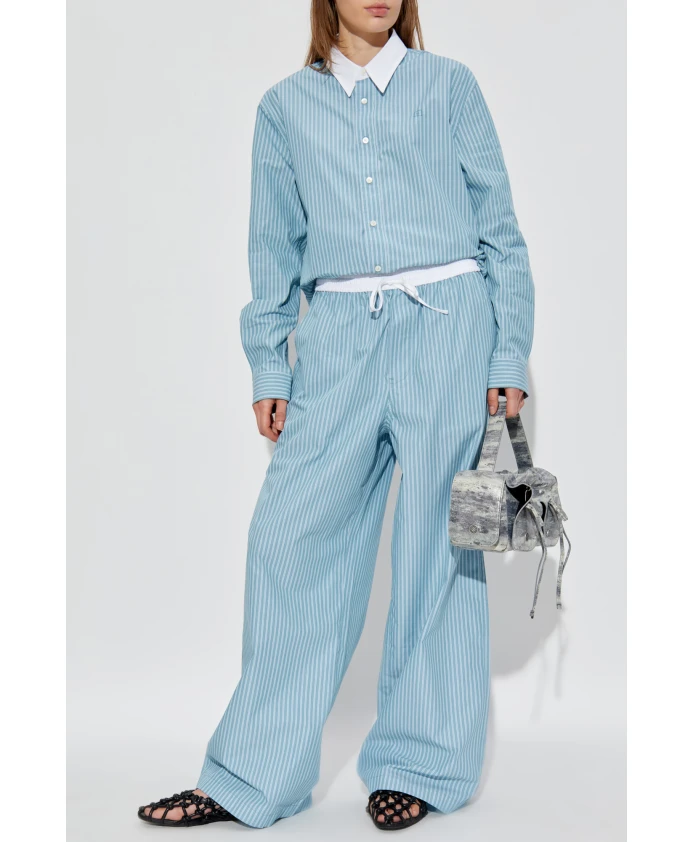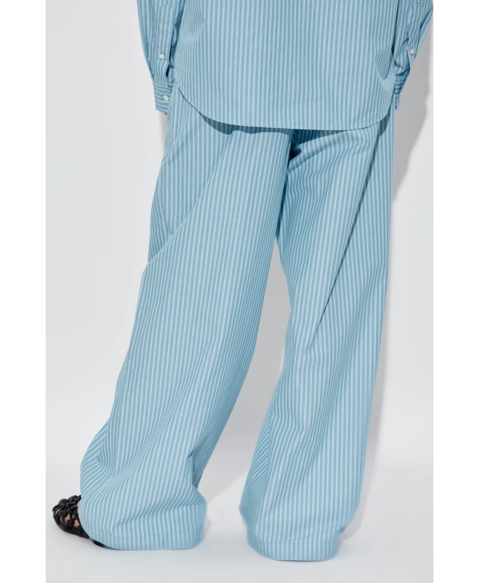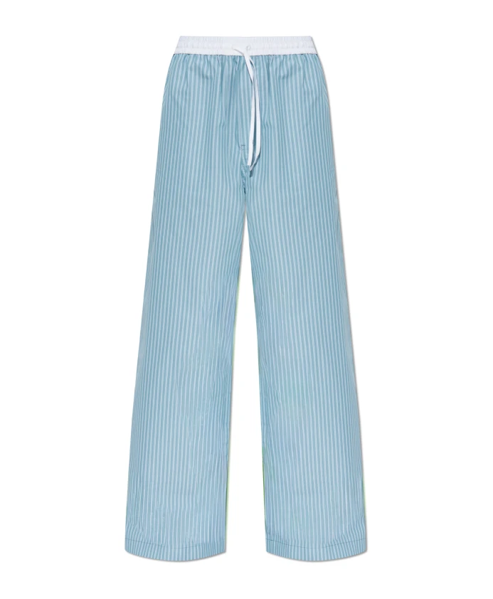 Полосатые брюки от Acne Studios сочетают скандинавский минимализм с ультраширокими штанинами, создавая расслабленный, современный силуэт. Полосатый узор и регулируемый эластичный пояс делают их изысканным и удобным выбором для повседневной носки. Ключевые особенности: Бирюзовый | Белый | Хлопок | Дышащая ткань | Мягкая на ощупь | Эластичный пояс со шнурком | Встроенные карманы | Вертикальный узкий полосатый узор | Ультраширокие штанины | Имитация ширинки | Минималистичный силуэт | Размеры и посадка: Ультраширокие штанины | Средняя посадка на талии | Свободный силуэт | Состав и уход: 100% хлопок