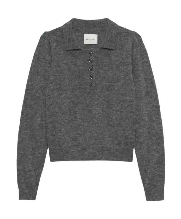 Вязаный свитер Alchemist Lola Polo Knit - это элегантный, приталенный свитер с воротником-поло и застежкой на пуговицы. Он имеет слегка укороченный, современный силуэт и приятную на ощупь текстуру благодаря сочетанию детской альпаки и натуральной шерсти. Ключевые особенности: Серый | Темно-серый меланж | Детская альпака, полиамид и натуральная шерсть | Застежка на пуговицы | Воротник-поло | Планка на пуговицах | Длинные рукава | Размеры и посадка: Приталенный силуэт | Слегка укороченная длина | Длинные рукава | Состав и уход: 50% альпака | 28% полиамид | 22% натуральная шерсть | Ручная стирка