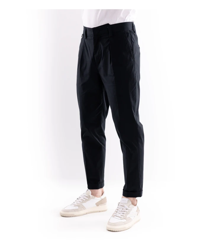 Брюки-чинос Paolo Pecora сочетают в себе классический силуэт и легкий хлопок, создавая изысканный повседневный образ. Складки спереди и длина до щиколотки придают им элегантный современный вид. Ключевые особенности: Черный | Хлопок | Эластичный материал | Боковые (американские) карманы | Задние накладные карманы | Застежка на пуговицу и молнию | Складки спереди | Длина до щиколотки с узким низом и отворотами | Шлевки для ремня | Размеры и посадка: Рост модели 1,80 м, размер 48 | Обычный крой со слегка заниженной промежностью | Длина до щиколотки | Состав ткани и уход: 98% хлопок | 2% эластан